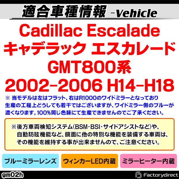 lm-gm02h Cadillac Escalade キャデラック エスカレード (GMT800系 2002-2006 H14-H18) LEDウインカードアミラーレンズ ブルー ドアミラーガラス (サイドミラー ブルーレンズ ブルーミラーレンズ ワイドミラー 撥水 親水加工 ウインカー ミラーヒーター 車用品)